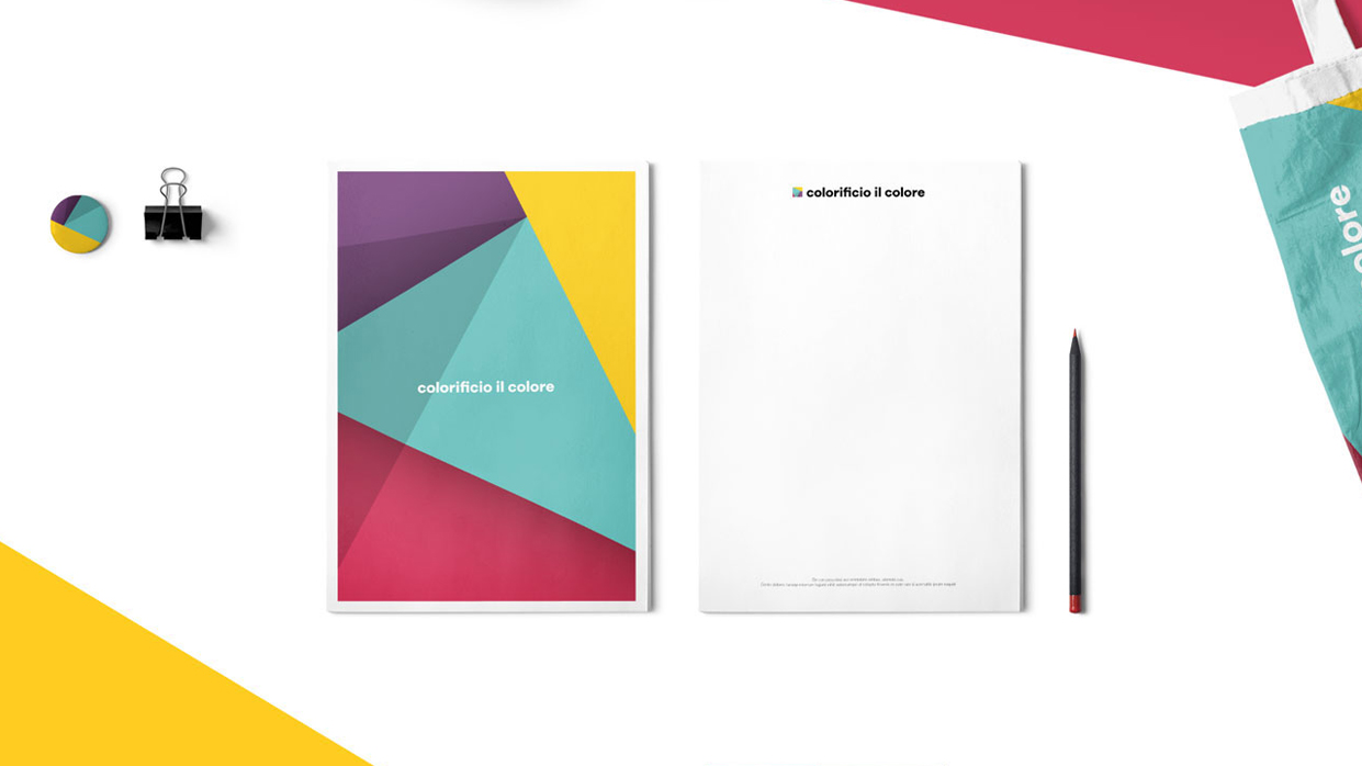 Il colore come elemento base del colorificio, esplorato per accostamenti e sovrapposizioni, andando a ricercare una forma che, attraverso linee rette, spigoli, incroci, creasse sfaccettature cromatiche e giochi di luce. Studio del logo, fissando un nuovo rigore tipografico, capace di suggerire l’approccio tecnico dell’attività.